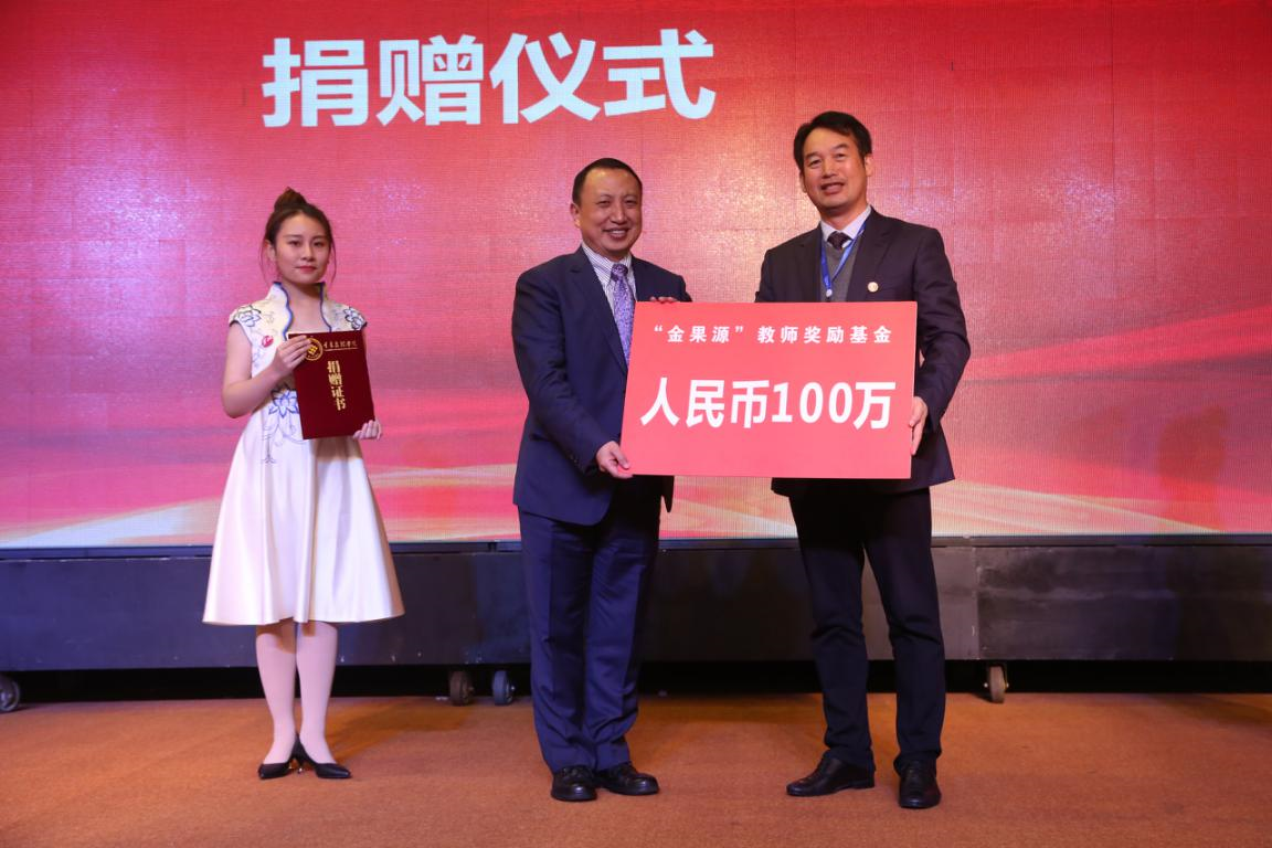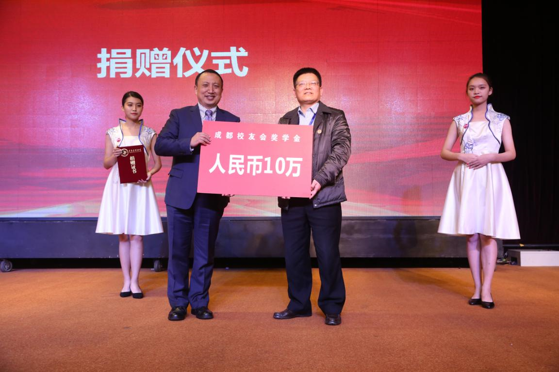 捐赠仪式上,艾中华校友向“金果源教师奖励基金”再次捐资100万元,姚平、钟晓斌校友向“成都校友会奖学金”也再次捐资10万元。