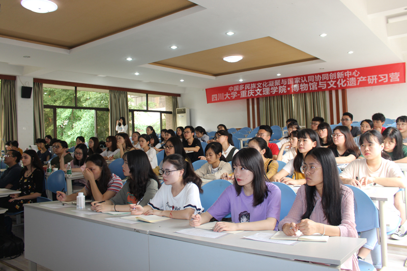 17日上午,学院师生在四川大学文科楼二阶举行了中国多民族文化凝聚与国家认同协同创新中心、四川大学-beat365在线登录官网两校协同教学实践项目“博物馆与文化遗产研习营”开营仪式。仪式由四川大学文学与新闻学院陈海龙博士主持,四川大学文学与新闻学院硕士生导师、中国俗文化研究所副所长李菲,重庆文化遗产学院院副院长李景国先后致辞。
