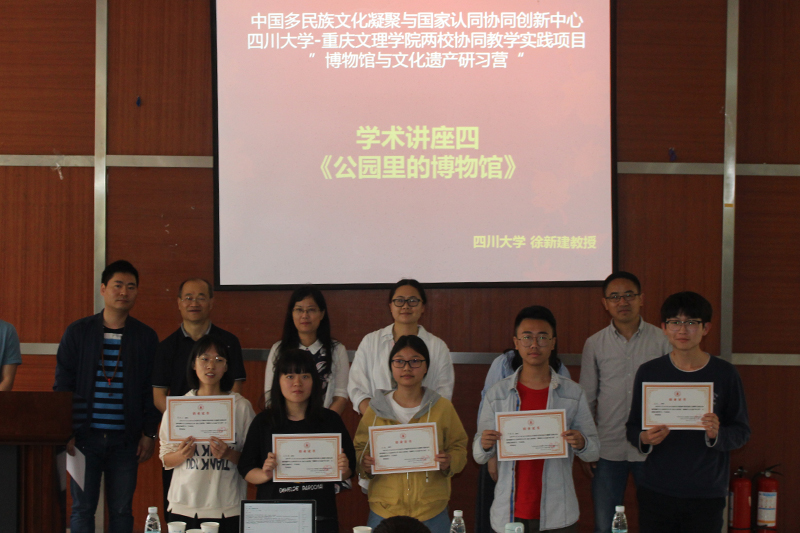 在为期三天的研习营活动中,四川大学文学与新闻学院博士生导师徐新建教授、硕士生导师邱硕副教授、意大利佩鲁贾大学艾莲博士等专家学者为我院文化遗产专业师生现场授课,组织学术研讨。学院师生通过现场教学、交流探讨的方式,考察了四川大学博物馆、四川省博物馆等实践教学基地。研习活动结束后,四川大学文学与新闻学院、中国多民族文化凝聚与国家认同协同创新中心为文化遗产专业学生颁发了结业证书。