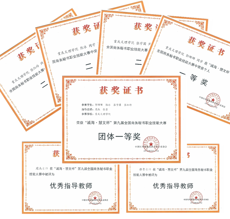 5月17日—19日,“诚海·慧文杯”第九届全国商务秘书职业技能大赛在河北政法职业学院举行,来自全国21个省、市、自治区88所本科和高职院校的120支参赛队伍参赛。beat365代表队凭借着扎实的理论功底、精湛的实践技能荣获本次大赛的“团体一等奖”。其中,郭珊珊同学荣获“个人综合一等奖”,陈冰、张学圆、张红玲三位团队成员均获“个人综合二等奖”;周杰、张雪两位老师荣获“优秀指导教师”称号。