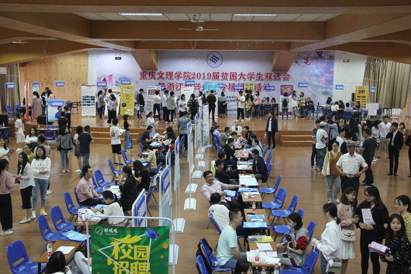 5月15日,beat3652019届贫困大学生双选会暨浙江绍兴企业专场招聘活动在红河校区学生活动中心举行,65家企业参会,提供2000余个招聘岗位,其中34家企业由浙江绍兴市就业管理服务局组团到校招聘,其余来自四川、安徽、江苏及重庆本地的企业。学校副校长万书辉到现场指导,学工部负责人、二级学院分管学生工作负责人、毕业年级辅导员、2019届毕业生及2020届实习生800余人参加本次招聘活动。