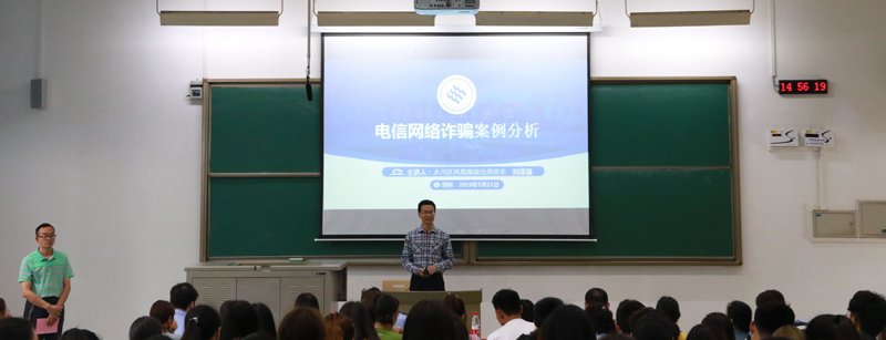 刘泽强介绍了凤凰湖派出所辖区高校的电信网络诈骗总体情况,分析了电信诈骗案件的前因后果,并告诫同学们要学会自我防范、共同宣传。他呼吁同学们要敢于面对不法分子,斩断黑手,共享平安。刘曦结合beat365发生的真实案例以及自己的办案经历,向同学们讲述了诈骗分子如何利用人们的心理一步步进行诈骗活动,从校园贷、电信诈骗、保险诈骗、刷单诈骗、中奖诈骗等方面介绍了诈骗的惯用形式和发展过程,从主动学习法规、保护个人信息、建立正确消费观、善用理财软件、树立证据保护意识、及时报案六个方面教育同学们做好应对和防范措施。