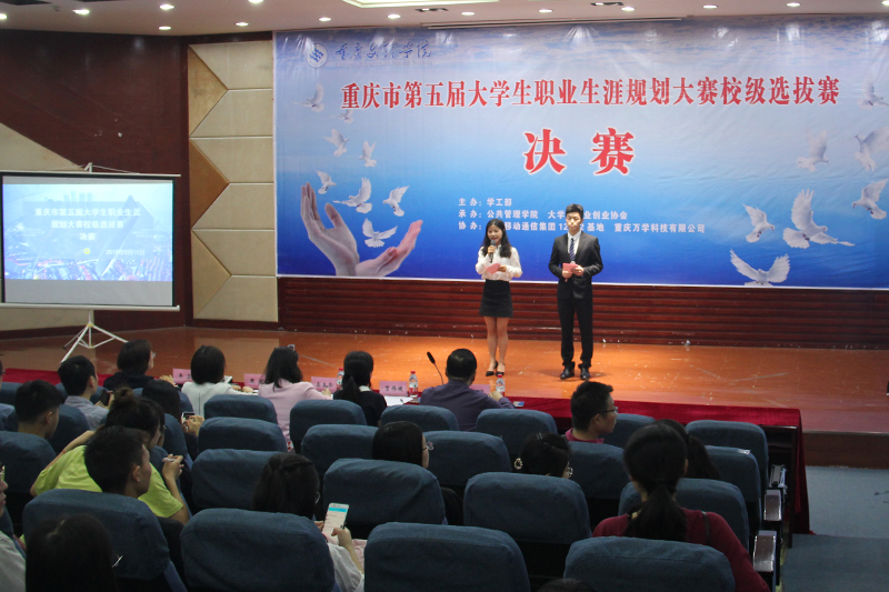 本次大赛以“明确个人目标,成就中国梦想”为主题,旨在增强学生职业发展意识,提前规划职业方向与路径,注重发展职业技能,增强就业竞争力,树立正确成才观。通过各二级学院初赛和校级复赛,共有20名选手参加本次决赛。经过职业生涯规划书PPT现场讲解、评委提问两个环节的激烈角逐,来自新材料技术研究院的钟雨辰、旅游学院的刘思琪获得一等奖,文化与传媒学院的徐远霞、林学与生命科学学院的饶志清、公共管理学院的刘蓉获得二等奖。学校将推荐优秀选手参与重庆市第五届大学生职业生涯规划大赛。