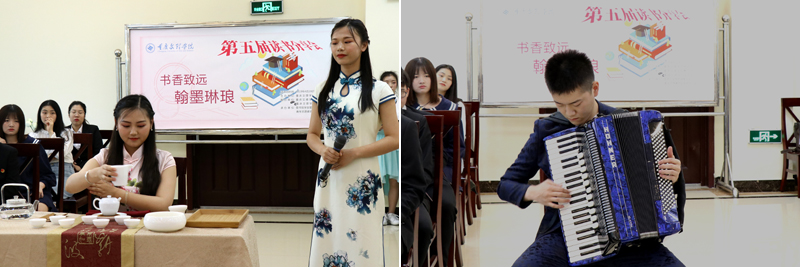 “美文共欣赏 疑义相与析”环节中,来自各学院的11名阅读推广大使分别向大家推荐了《学会学习:从认识自我到高效学习》《毕业了,你何去何从》《假如给我三天光明》等多部优秀书籍。通过介绍内容概况、畅谈心得体会、阐述理论思考等方式,向大家展示每部书籍独特的魅力,共同探讨对学习、生活以及未来工作的规划和感悟,评委根据分享者的现场表现进行评分。同学们的出色表现以及其间穿插的茶艺、手风琴、琵琶独奏等精彩表演,赢得了观众们阵阵掌声。经过激烈角逐,廖泽灯获得一等奖;刘雨、张姝甯获二等奖;吴姣、李青山、台洁、匡庆获三等奖;戴庆获最佳悦读奖;蔡慧玲获最佳鉴书奖;朱燕获最佳口才奖;张云露获最佳思辨奖。