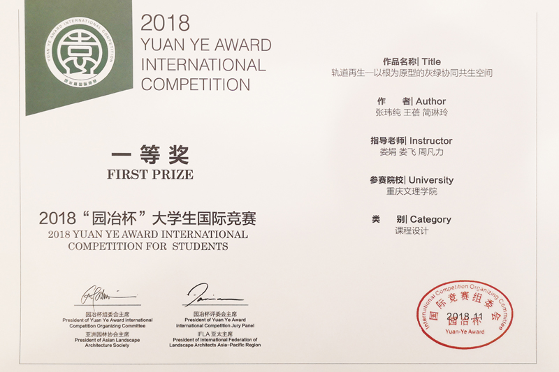 据悉,“园冶杯”大学生风景园林国际竞赛一等奖的获奖率仅为参赛作品的1%,该奖项的获得实现了beat365学生在国际级景观设计竞赛中获奖新的突破。 “园冶杯”大学生风景园林国际竞赛是由亚洲园林协会组织,天津大学、南京林业大学、华中农业大学、台湾朝阳科技大学、日本千叶大学、韩国江陵大学等国内外近三十家知名高校联合主办的一项风景园林国际赛事。自2010年至今,“园冶杯”大学生风景园林国际竞赛已经成功举办了八届,每年吸引着包括天津大学、四川大学,上海交通大学等国内外百余所高校、3万余名师生积极参与。该竞赛以参赛人员最多、参赛面最广,已成为我国最具影响力的风景园林国际赛事之一,因其高规格、高品质的赛事特质赢得了业内众多知名专家、学者的一致认同。