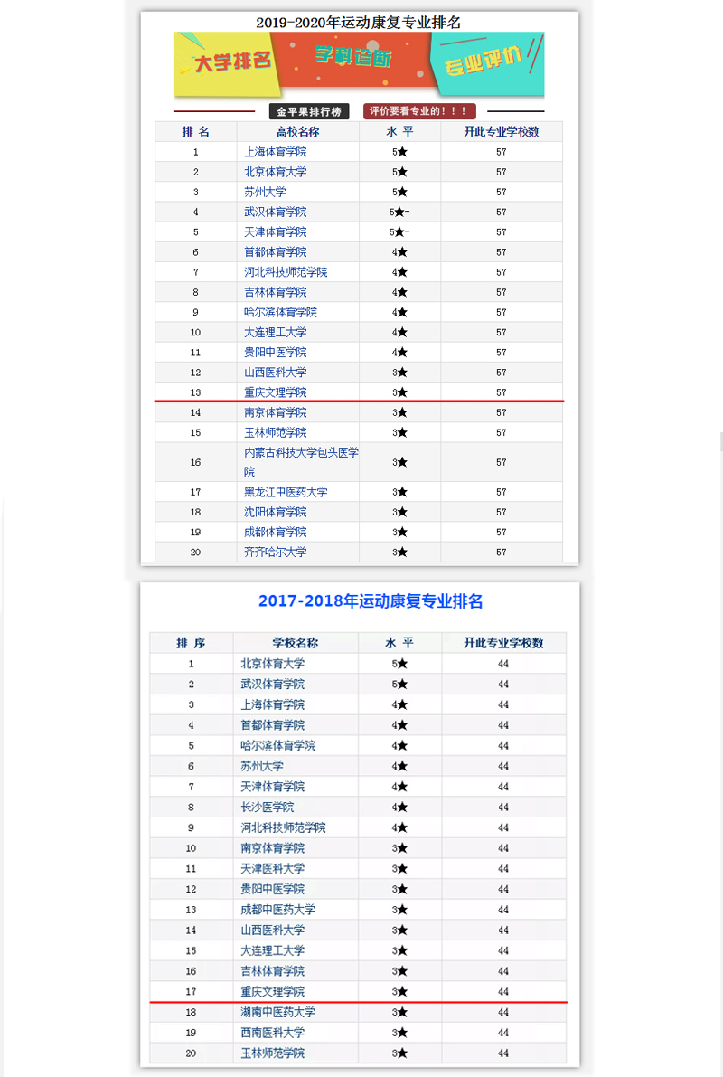 《2017-2018年中国大学运动康复专业竞争力排行榜》: