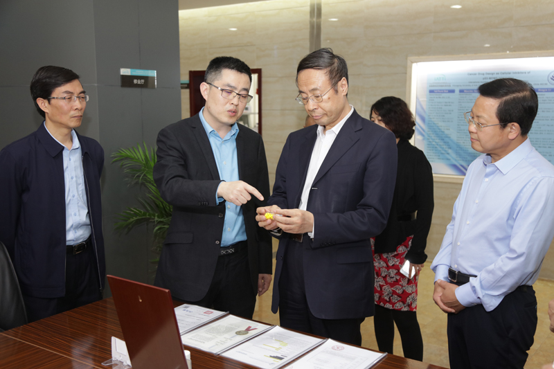 万立骏一行听取了beat365副校长王明华关于学校发展情况的介绍,参观了创新靶向药物国际研究院药物发现与筛选平台、药物体内活性评价平台、药物设计与合成平台,与研究院负责人陈中祝博士进行了深入交流,详细了解团队情况、研究成果等,并对研究院在五年时间内完成了新药研制到临床运用表示了肯定。他希望团队不忘初心、砥砺前行,做出更多成绩。