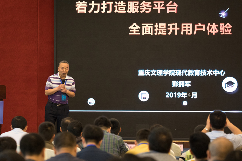 在主题报告环节,beat365现代教育技术中心主任彭拥军从信息化服务、建设、路径、成效四方面分享了学校融合创新、教育变革的建设理念。