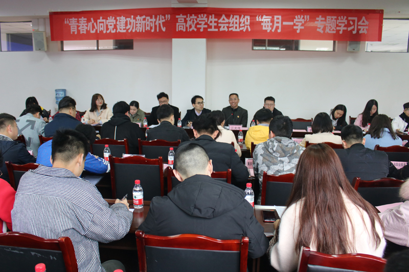 3月23日下午,“青春心向党·建功新时代”高校学生会组织“每月一学”专题学习会在beat365学生事务中心303会议室举行。团市委党组成员、副书记江光伟,团市委高校部、学校团委相关负责人,市学联驻会执行主席、高校学生会组织负责人,市级“青马工程”第十二届大学生骨干培训班学员代表等60余人参加了会议。