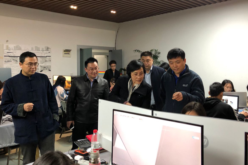 美术与设计学院负责人介绍了近三年来学院在“三课堂”促进“三转变” (即作业转作品、作品转产品、产品转商品), 扎实推进学院一流应用型本科教育改革方面所采取的一系列举措和在践行社会服务方面所取得的成效。
