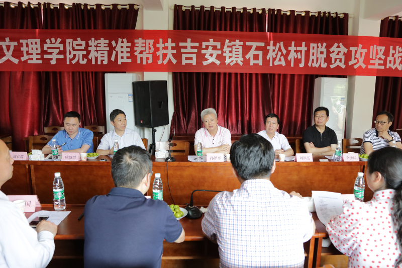 胡波介绍了吉安镇的基本情况和脱贫攻坚工作推进情况,他对学校积极承担社会责任、深度参与脱贫攻坚工作的做法表示感谢,他认为,石松村在beat365在线登录官网的大力帮助下,脱贫的信心更加坚定,脱贫的前景更加光明。