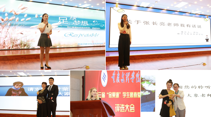 通过推介者的精彩推介,刘娴丽、贺方云、熊小伟、向晋辉、齐效成、袁才荣、魏良福、廖长荣、曹川川、韩永青10位教师获得“金果源”学生最喜爱的教师奖;郑小芳、张长亮、张 雪、郑士远、杨树成5位教师获“金果源”学生最喜爱的教师提名奖;朱红玲、周明东、董晨霖、韦涅拉、邓 怡5位同学获得最佳推介奖。