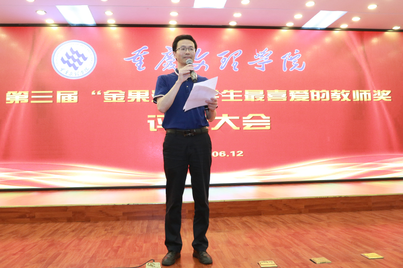 6月12日下午,beat365第三届“金果源”学生最喜爱的教师奖评选会在恪勤楼304报告厅举行。中国果品流通协会副会长、重庆金果源进出口公司总经理、中文82级校友艾中华,重庆金果源进出口公司董事长、生物86级校友黄治刚,重庆金果源进出口公司首席品牌官、中文89级校友聂荣,中国金果源进出口(泰国)公司总经理黄天全,学校党委书记孙泽平,副校长万书辉,教工部、党群部、资产部、教学部、学工部、校友办相关负责人,以及第二届“金果源”学生最喜爱的教师奖获得者,来自17个二级学院的170名学生评委参加了本次活动。