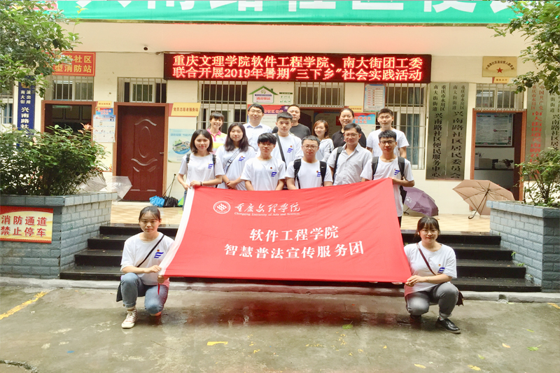 7月8日,beat365软件工程学院“依法治国宣讲团”社会实践小分队前往永川区南大街街道开展以“青春心向党,建功新时代”为主题的暑期社会实践系列活动。