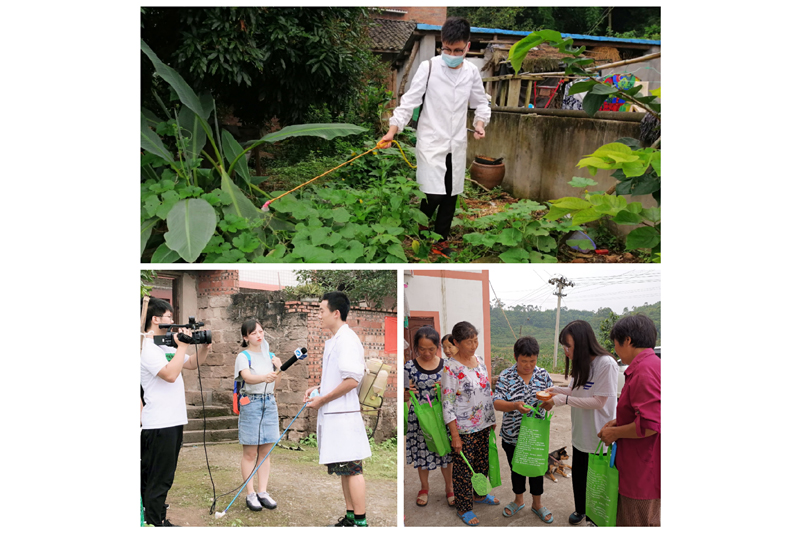 6日下午,为预防病媒疾病的传播与流行,保护村民的身体健康,实践团到打鱼河村,分成两组开展农村除四害活动。一组由宋世勇带队,对村民进行走访,同时利用喷雾器帮助村民对房屋内外、排水沟等重点区域进行药物喷洒。另一组成员由黄浩老师带队,为当地村民送去“除四害大礼包”——蚊香、苍蝇拍、粘鼠板和杀虫剂,村民们乐得合不拢嘴,纷纷表示将积极配合农村除四害工作,创建美丽宜居的环境。