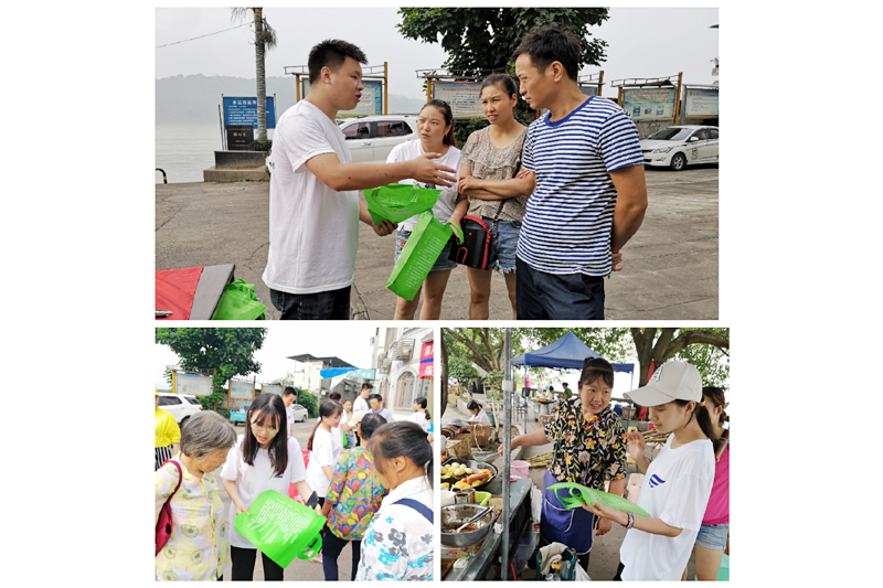 6日上午,实践团在松溉镇集市口开展了环保知识宣传。通过发放环保宣传袋、展示由废品制作的手工艺品、普及垃圾分类以及疾病预防知识等方式,提升居民环保意识,倡导爱干净、勤打扫的良好生活习惯,减少和杜绝环境污染,推动美丽乡村建设。
