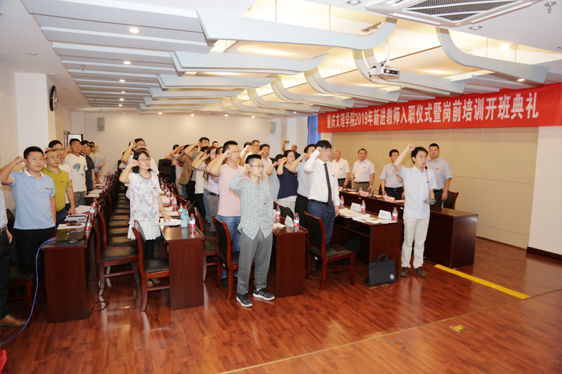 全体新进教师进行了庄严的入职宣誓,“忠诚党的教育事业,履行人民教师职责。秉承'进德修业、博文达理’的校训精神,潜心治学、教书育人、敬业爱校……”。随后,全体新教师参观了校史馆。