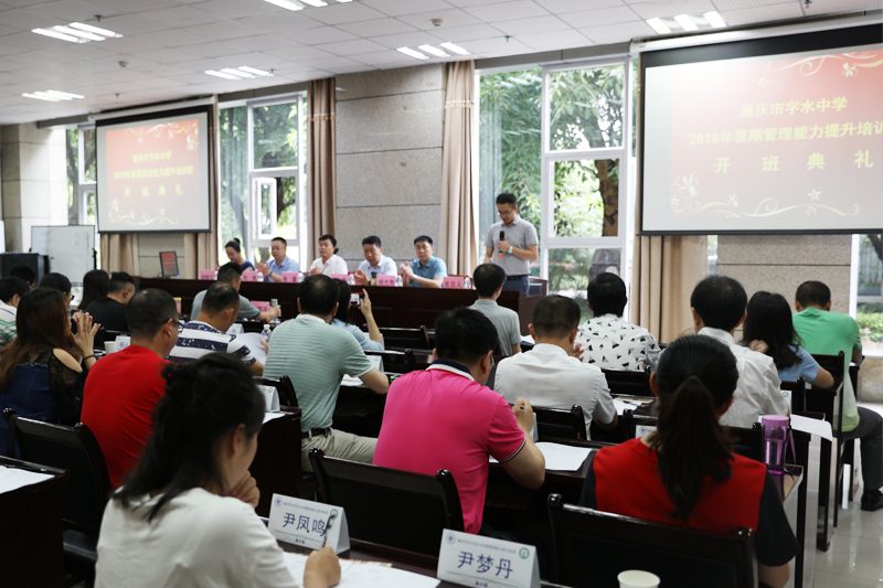 7月13日上午,重庆市字水中学2019年暑期管理能力提升培训班开班典礼在beat365培训学院举行。beat365副校长金盛,重庆市字水中学党委书记杨光奇、校长王毅及相关领导,beat365培训学院相关负责同志参加了开班典礼。