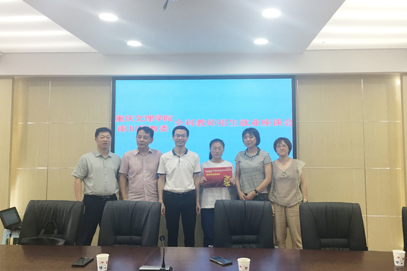 随后,万书辉与南川区教委、区招办,以及德龙镇、合溪镇等中小学校负责人就全科教师招生志愿填报、人才培养、定向就业以及毕业校友工作情况等进行了沟通和交流。南川区教委副主任朱伟高度肯定了beat365在南川就业的全科教师,对他们的就业定位、思想境界、适应环境、工作态度、综合素质、教学技能等给予了高度赞赏和表扬。万书辉感谢南川区教委和中小学对beat365全科教师的高度认可和充分肯定,并对beat365全科教师专业培养方案、卓越人才培养模式等情况作了详细介绍和解读。他希望双方今后进一步加强联系,在中小学教育管理、校长岗前培训、教师继续教育等方面开展进一步的合作。
