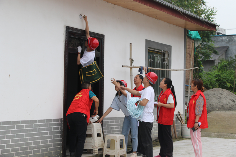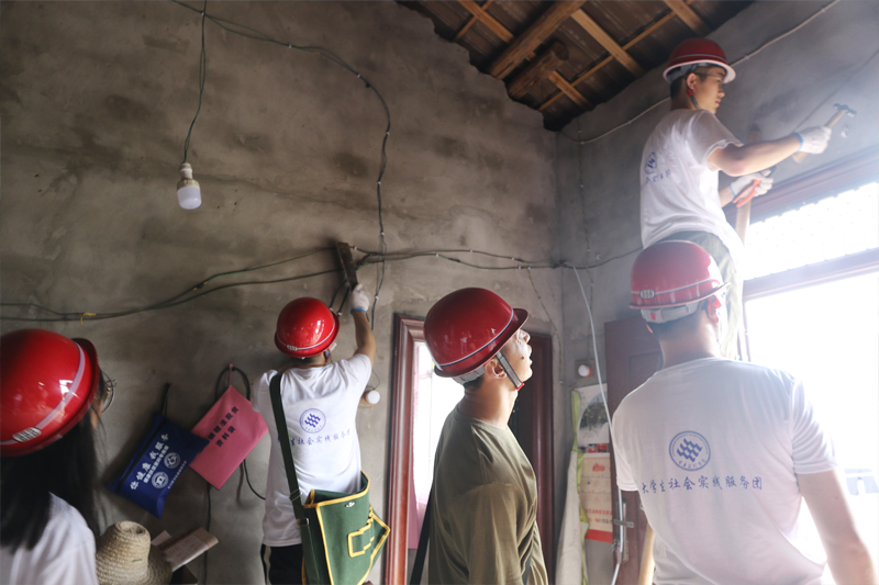 活动期间,大家根据工作安排采取“1+1+1+1”(即1名镇机关干部+1名村社区干部+1组实践小分队学生+1名供电所工作人员)模式进行入户走访,计划对全镇5个村和2个社区共518家贫困户、低保户和散居五保户进行全覆盖排查、全系统整改老化线路和安全用电全员宣传。活动中,各实践小组从早上7:30开始入户一直到晚上7点多,走访对象分布在不同的村落,平均每天排查整改20多户,各户的实际情况各不相同,工作任务非常艰巨。在松溉镇党委和政府等各方支持下,原计划7-10天的排查整改工作同学们用5天的时间高强度完成。518户困难家庭,除23户不在家,走访了495户,其中对3户新房全部安装、91户排危线路做较大整改,369户检修部分线路,32户仅换插座和灯泡。
