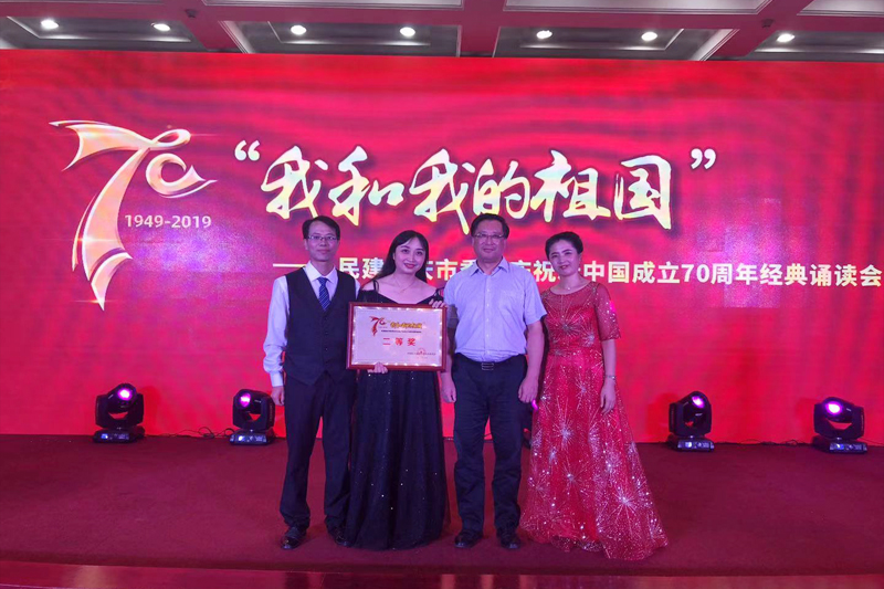 7月26日下午,民建重庆市委为庆祝新中国成立70周年,在市党派大楼议政厅举行了主题为“我和我的祖国”的经典诵读会。来自重庆民建各区县组织的17支参赛队伍进行了精彩的诵读比赛。由beat365音乐学院蒋巧副教授编排并担任小提琴演奏,材料学院王锦标老师、外国语学院赵妍副教授参与朗诵的原创作品《诺言》,在十七个节目中脱颖而出,喜获二等奖。