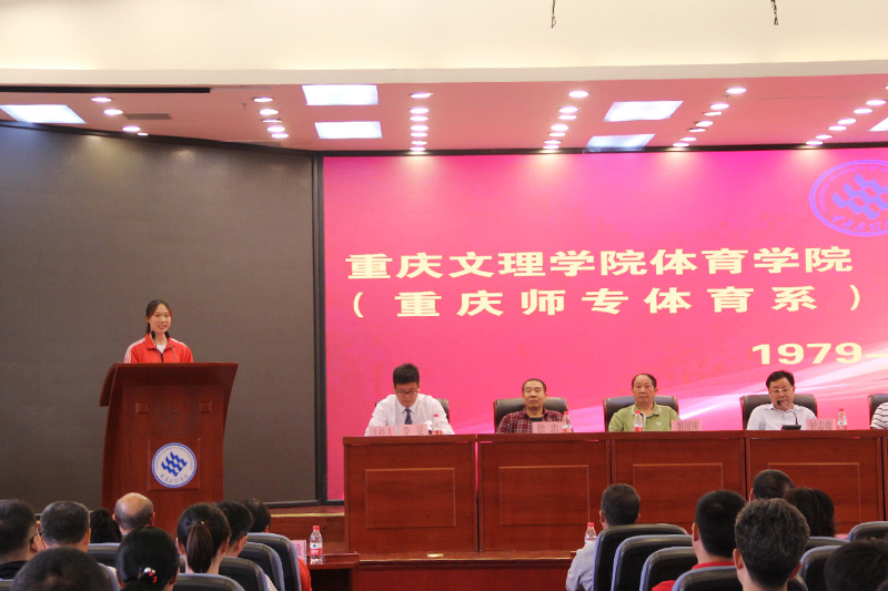 庆典开场播放院庆宣传片及校友贺信,体育学院党总支副书记、院长唐建忠代表体育学院致欢迎辞。体育系创始人之一、原重庆师专体育系党总支书记王大成,国家级骨干教师、永川区教委体育教研员陶玲,在校学生代表梁玉婷分别发言。最后学校党委副书记兰刚教授讲话,他希望体育学院能一如既往地把体育事业做精、做强,奋力开创新时代学校体育事业发展的新局面。