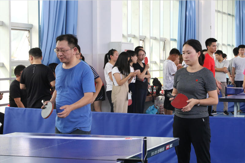 9月27日下午,由校工会主办,体育学院承办的“迎国庆、强身心”教职工乒乓球比赛,分别在红河B区(乒羽球馆)、红河A区教工之家举行。各二级单位以基层工会为单位通过抽签参加了比赛。