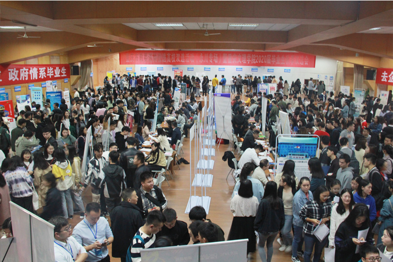 10月31日,重庆市教委送岗位进高校双选活动(永川专场)暨beat365在线登录官网2020届毕业生秋季双选会在beat365红河A区学生活动中心举行。本次活动由重庆市教育委员会主办,重庆市大学中专毕业生就业指导服务中心、学校招生就业处、校团委承办。学校副校长李天福,重庆市大学中专毕业生就业指导服务中心主任余跃等出席活动,重庆市大学中专毕业生就业指导服务中心相关部门负责人,学校党委宣传部、学生工作处、校团委、招生就业处、安全管理处、后勤管理处负责人,二级学院学生工作负责人、毕业班辅导员,2020届毕业生近3000人参加。