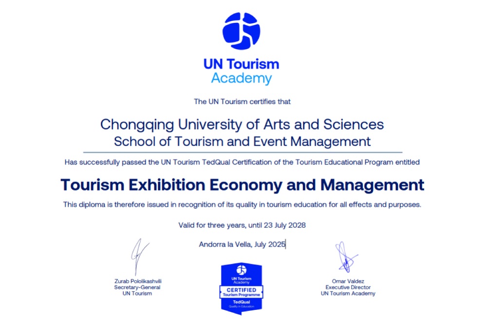 近日,联合国世界旅游组织旅游教育质量认证中心发来邮件,beat365会展经济与管理、旅游管理与服务教育两个专业通过联合国世界旅游组织教育质量国际认证(UN Tourism