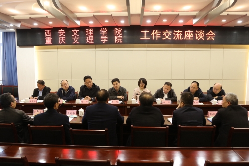 3月28日上午,西安beat365学院校长陈刚一行来校考察交流工作,双方在恪勤楼422会议室进行了座谈交流。学校校长黄伟九、副校长王明华以及党政办、教务处、人事处、发展规划处、科研处、研究生处、信息化办公室等相关职能部门负责人参加了座谈。会议由王明华主持。