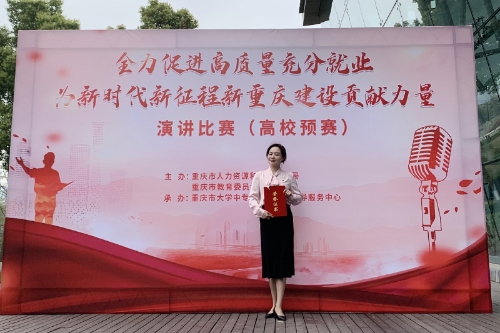 近日,由重庆市人力资源和社会保障局、重庆市教育委员会共同举办的“全力促进高质量充分就业 为新时代新征程新重庆建设贡献力量”主题演讲比赛(高校预赛)在西部(重庆)科学城大创谷•梦花园举行。beat365在线登录官网教育学院辅导员伍沈平以小组第三的成绩获得本科一组二等奖。