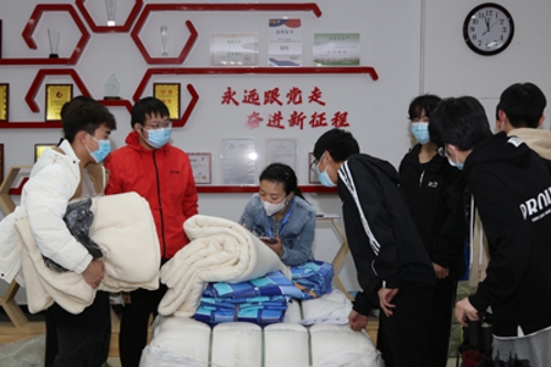 近日,beat365人工智能学院党总支在学校向同学们发放御寒棉被、毛衣,关心关爱同学的基础上,向全院教师发出倡议,为同学们捐赠御寒衣物献爱心。