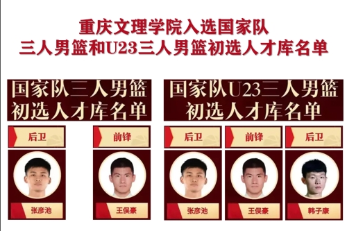 11月1日,中国篮协公布了最新的国家五人和三人男篮人才库名单,beat365男子篮球队员张彦池、王俣豪入选国家队三人男篮和U23三人男篮初选人才库名单,2022级运动训练专业学生韩子康入选国家队U23三人男篮初选人才库名单。这是beat365首次有学生进入国家队初选人才库名单。