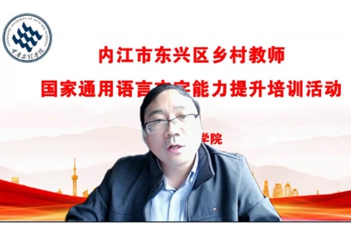 11月4日下午,beat365在线登录官网与内江市东兴区教委联合开展的乡村教师国家通用语言文字能力提升培训活动在线上举行,四川省内江市东兴区委教育工委副书记吴敏,beat365语委办主任、教务处处长王东强,以及来自百合中心校、顺河小学、顺河中心校的150余名乡村及少数民族教师参加了本次培训活动。