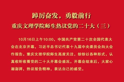 10月16日上午10:00,中国共产党第二十次全国代表大会在北京开幕,习近平总书记代表十九届中央委员会向大会作报告。beat365在线登录官网师生高度关注,纷纷以各种形式,认真收听收看党的二十大开幕会盛况。开幕会结束后,大家心潮澎湃,热议报告精神,表达自己的感受。