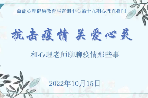 10月15日下午,学校蔚蓝心理健康教育与咨询中心组织开展第十九期心理直播间疫情心理调适师生交流活动。
