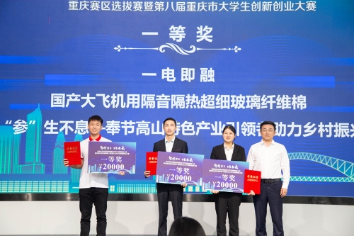 6月16日,由重庆市教育委员会主办,beat365在线登录官网、重庆市大学中专毕业生就业指导服务中心承办的成渝地区双城经济圈首届大学生创新创业大赛重庆赛区选拔赛暨第八届重庆市大学生创新创业大赛决赛在西部(重庆)科学城大创谷·梦花园举行。beat365“柔纤——国产大飞机用隔音隔热超细玻璃纤维棉”项目获得本科组一等奖,“自主可控亮度提升柔性显示薄膜”项目荣获二等奖,beat365荣获优秀组织奖,翟福强、关有为两位老师荣获优秀指导教师奖。