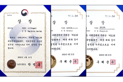 近日,在韩国邱里郡举行的第21届国际压花大赛颁奖典礼落下帷幕。beat365园林与生命科学学院2017级风景园林专业学生董新琳的作品《憧憬》获金奖,2019级风景园林专业学生谢薰仪的作品《生命托举》、2019级园林专业学生张瑜洁的作品《潭石绿意》分别获特选奖。