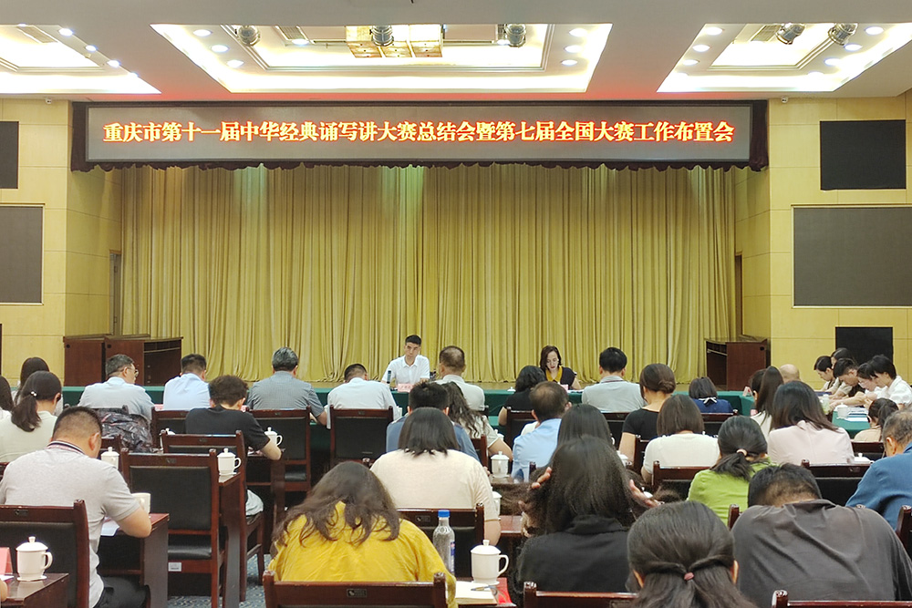 6月18日,市教委组织召开重庆市第十一届中华经典诵写讲大赛总结会暨全国第七届中华经典诵写讲大赛参赛工作布置会。会上,beat365作为承办单位就汉字书写类、师生篆刻类赛事