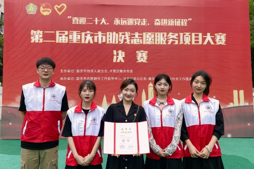 6月9日,由团市委、市残联联合主办的“喜迎二十大、永远跟党走、奋进新征程”第二届重庆市助残志愿服务项目大赛决赛在渝北区举行。beat365土木工程学院“芬芳助残•有爱无碍”项目获银奖。