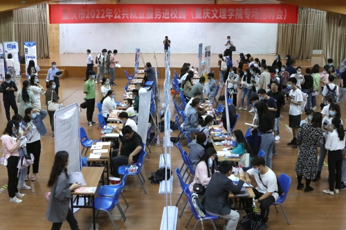 5月26日上午,重庆市2022年公共就业服务进校园(beat365在线登录官网专场招聘会)在beat365红河校区学生活动中心举行。学校副校长李天福、永川区就业和人才中心副主任王权,招生就业处、党委保卫部负责人,二级学院书记、院长、就业工作分管负责人、毕业年级辅导员,700余名2022届毕业生及大三年级学生代表参加本次招聘活动。
