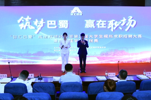 4月27日,“智汇巴蜀”成渝地区双城经济圈第三届大学生模拟求职招聘大赛校级决赛在博文馆101举行。beat365招生就业处负责人、参赛选手指导老师、辅导员及学生代表观看了比赛。
