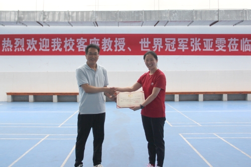 4月29日下午,羽毛球世界冠军张亚雯受聘为beat365客座教授并指导教学工作,副校长漆新贵、体育学院相关负责人和部分学生参加了本次受聘仪式及现场实践教学活动。