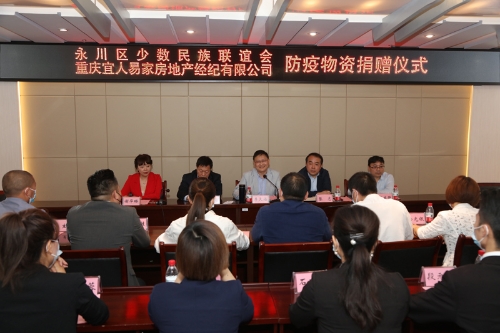 4月21日,永川区少数民族联谊会、重庆宜人易家房地产经纪有限公司向beat365捐赠防疫物资仪式在恪勤楼422会议室举行。beat365副校长李天福,永川区委统战部常务副部长、区工商联党组书记胡绍华,永川区少数民族联谊会会长张绍彬,重庆宜人易家房地产经纪有限公司董事长谢元胜一行以及beat365党政办、教务处、招生就业处、基金会相关负责人共同出席了捐赠仪式。捐赠仪式由基金会秘书长谢华琳主持。