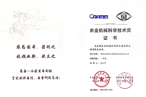 近日,中国农业机械工业协会、中国农业机械学会颁发了2021年度农业机械科学技术奖获奖证书。beat365赵立军教授参与主研的科技项目“棉花全程作业智能测试技术与装备”荣获一等奖。这是beat365在农机领域科学技术奖项上的首次突破。