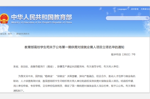 4月6日,教育部公布《关于第一期供需对接就业育人项目立项名单的通知》(教学司函〔2022〕7号),由beat365招生就业处何独明和人工智能学院都安坤主持的就业实习基地、定向人才培养培训两个项目获批教育部供需对接就业育人项目立项。