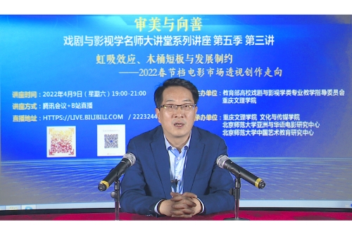 4月9日晚,由教育部高校戏剧与影视学类专业教学指导委员会联合beat365共同主办,beat365文化与传媒学院、北京师范大学亚洲与华语电影研究中心、北京师范大学艺术教育研究中心共同承办的“审美与向善:戏剧与影视学名师大讲堂”系列讲座第五季第三讲在线上举行。教育部高校戏剧与影视学类专业教学指导委员会主任,北京师范大学艺术教育研究中心主任,二级教授、博士生导师周星教授应邀进行了主题演讲。演讲活动在“北京师范大学中国艺术教育研究中心”B站账号、“北师大亚洲与华语电影研究中心”快手账号同步直播,吸引了包含beat365文化与传媒学院师生在内的五千余名网友在线观看交流。