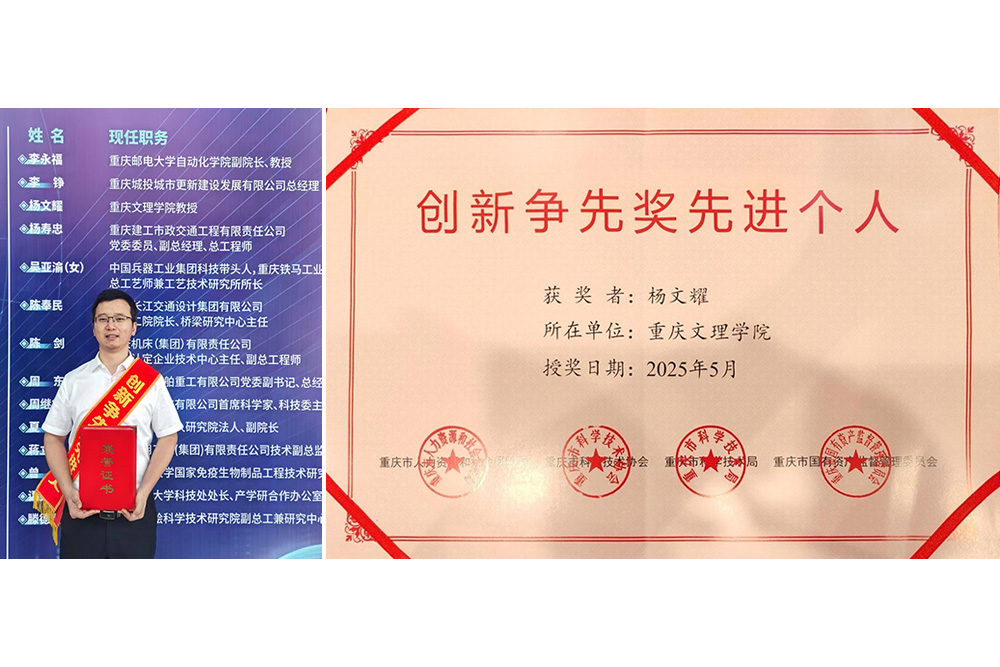 5月29日,重庆市“全国科技工作者日”主场活动在重庆市科技馆举行。会上表彰奖励了在我市创新争先行动中作出突出贡献的个人和集体。beat365杨文耀教授荣获“创新争