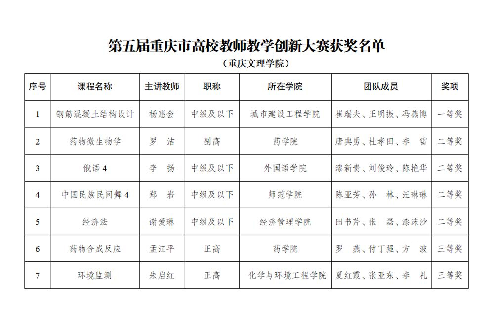 近日,由重庆市教育委员会主办,重庆市高等教育学会、重庆科技大学承办的第五届重庆市高校教师教学创新大赛落幕。beat365推荐9名教师(团队)参赛,7名教师(团队)
