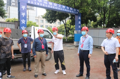 3月16日上午,学校校长黄伟九、党委常委陈中祝在学校基建处、永川区新城建设管理委员会和永川区惠通建设发展有限公司负责人陪同下,深入综合实训楼装修现场督查指导。